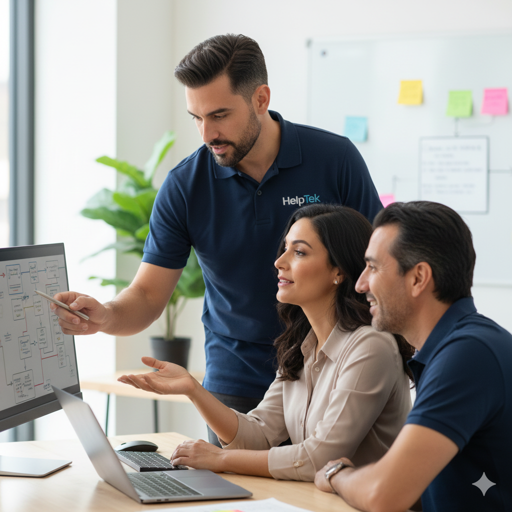 Deje de coordinar entre el técnico de redes, el de soporte y el diseñador web. HelpTek unifica todas sus necesidades tecnológicas, desde la infraestructura física hasta su estrategia digital, garantizando eficiencia y crecimiento.